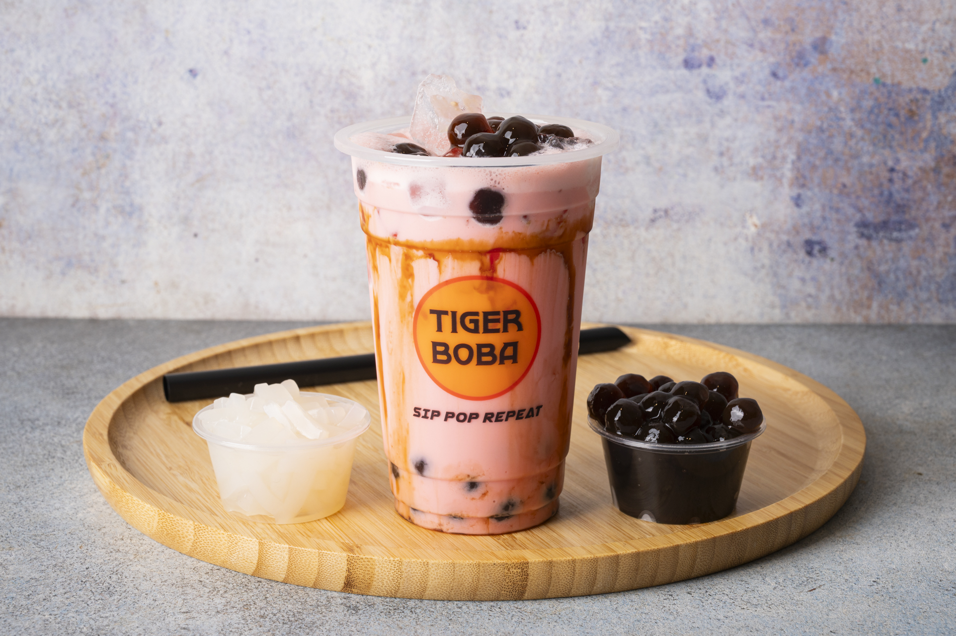 Raspberry milk tea is a fruity and creamy bubble tea that combines the sweet flavor of raspberries with the smoothness of milk tea. It’s typically made with black or green tea, raspberry syrup or puree, milk, and a touch of sweetener for a perfectly balanced taste. Served over ice with chewy tapioca pearls or fruit-flavored boba, this refreshing drink offers a delightful blend of fresh, floral, and creamy flavors. Some variations include adding vanilla or honey for extra depth. A must-try for raspberry lovers.